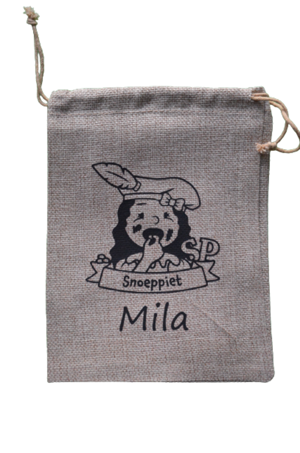 Deze leuke jute zakjes zijn te personaliseren met de naam van jou kind. Ook kun je kiezen voor een jongens of meisjes variant 'snoeppiet'.
